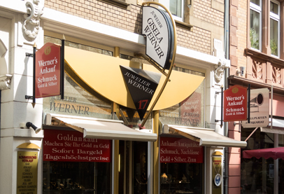In unserem An- und Verkaufgeschäft in der Mauergasse, direkt in der Fußgängerzone der Wiesbadener Innenstadt gelegen, bieten wir seit über 40 Jahren Schmuck und Antiquitäten an.